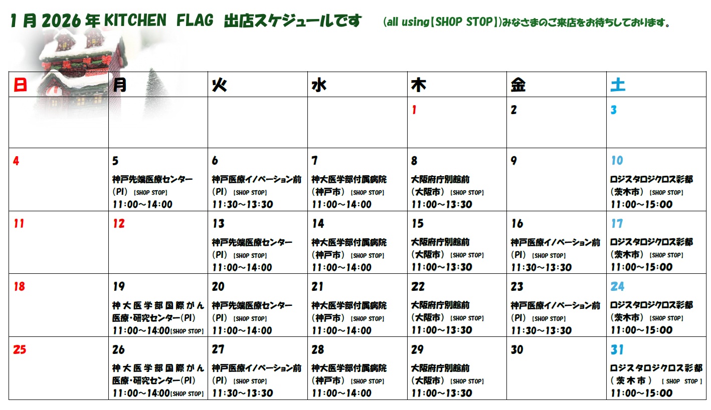 2025年12月23日(火):2026年1月 KITCHEN FLAG 出店スケジュール